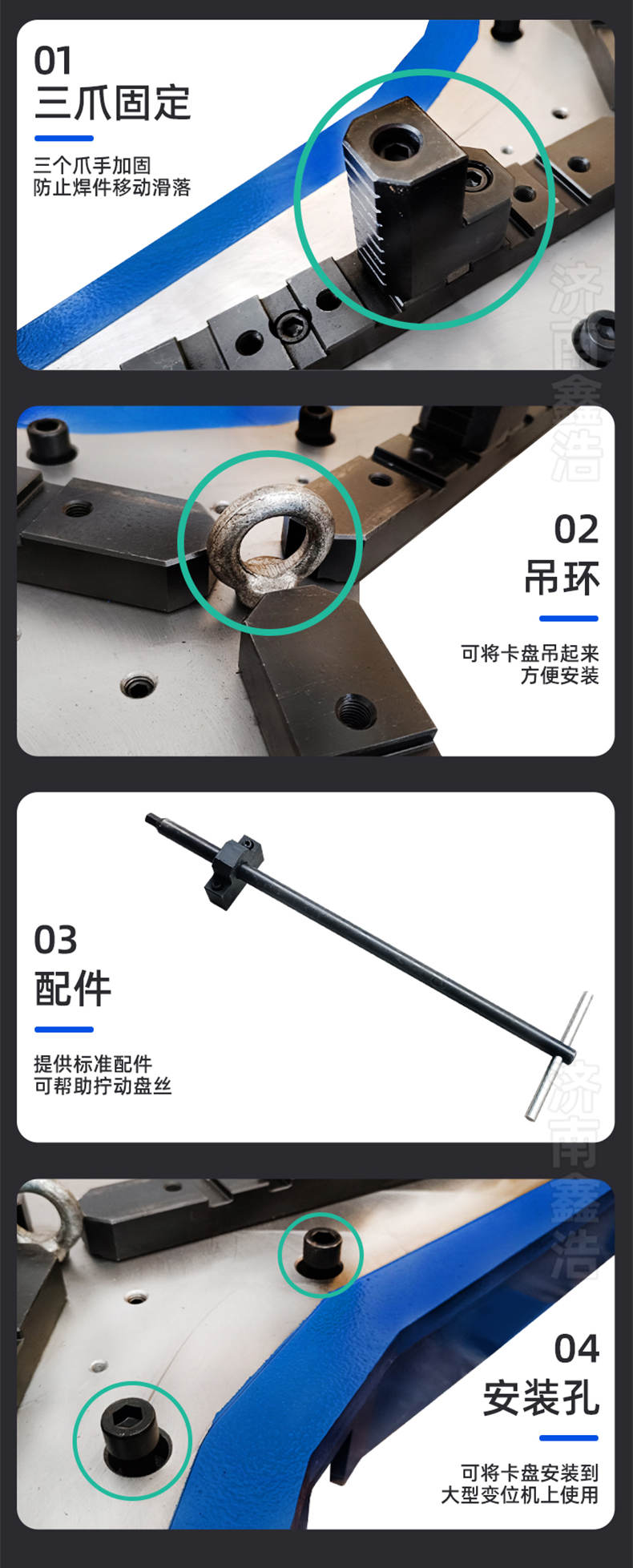 鑫浩焊接卡盤具有精度高、通孔大、重復(fù)定位準(zhǔn)確、安裝方便、